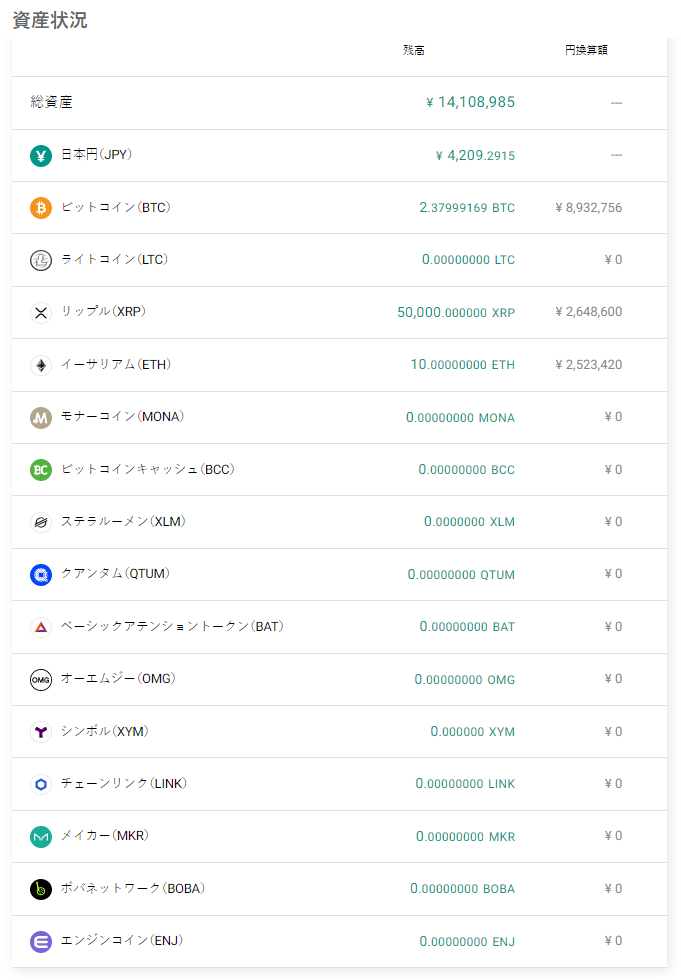 法人資産を円だけで保有しているのは不安なので、収入の20%を仮想通貨に変えています。