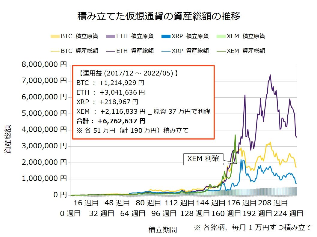 積み立て232週間(2017年12月開始)で『+6,592,365円』でした。