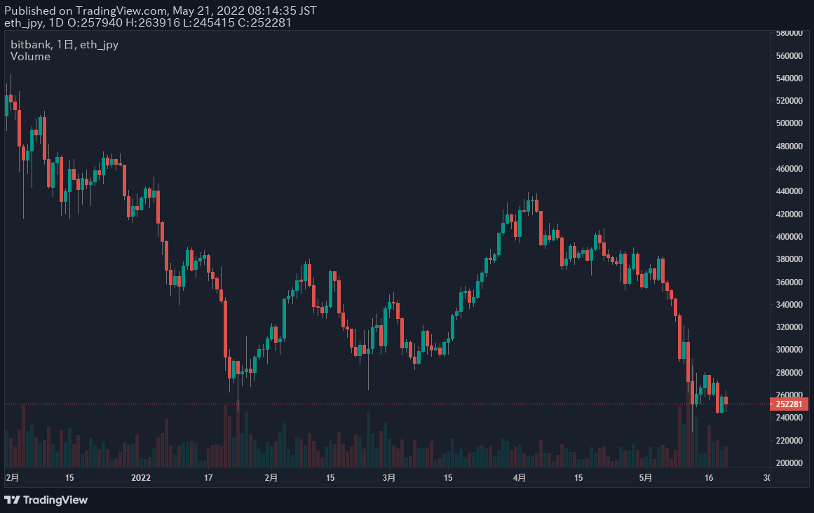 もちろんこのあとビットコインがさらに下落するなら一旦売って買い戻すのが正しいですし、反転して上昇するなら全力買いが正しいです。