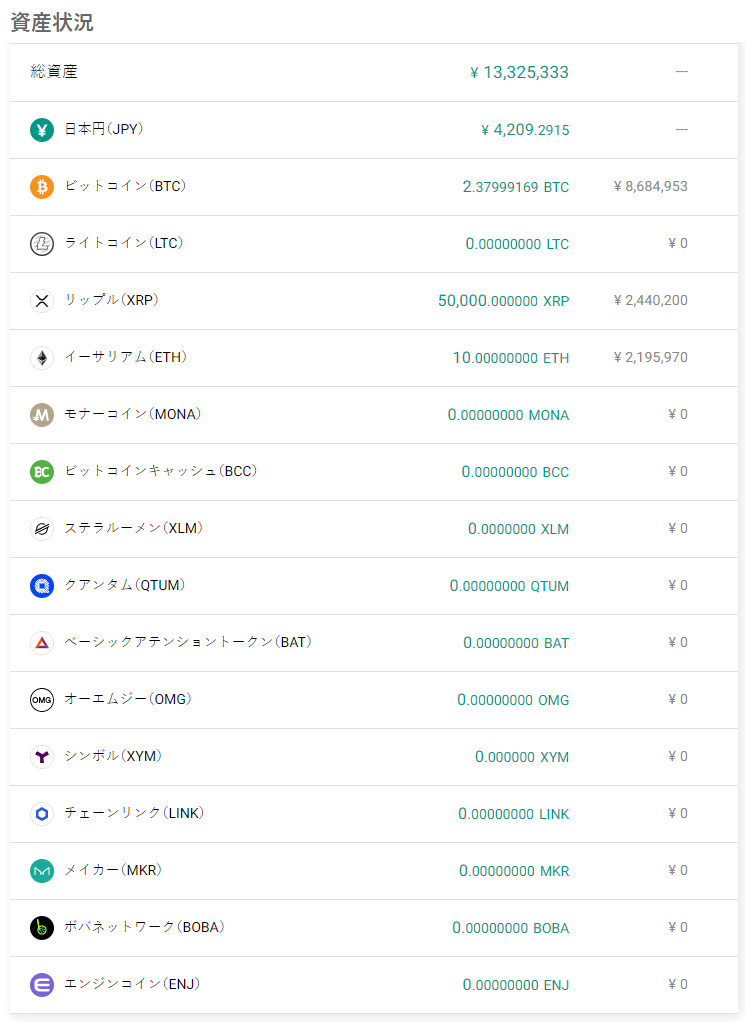 法人資産を円だけで保有しているのは不安なので、収入の20%を仮想通貨に変えています。