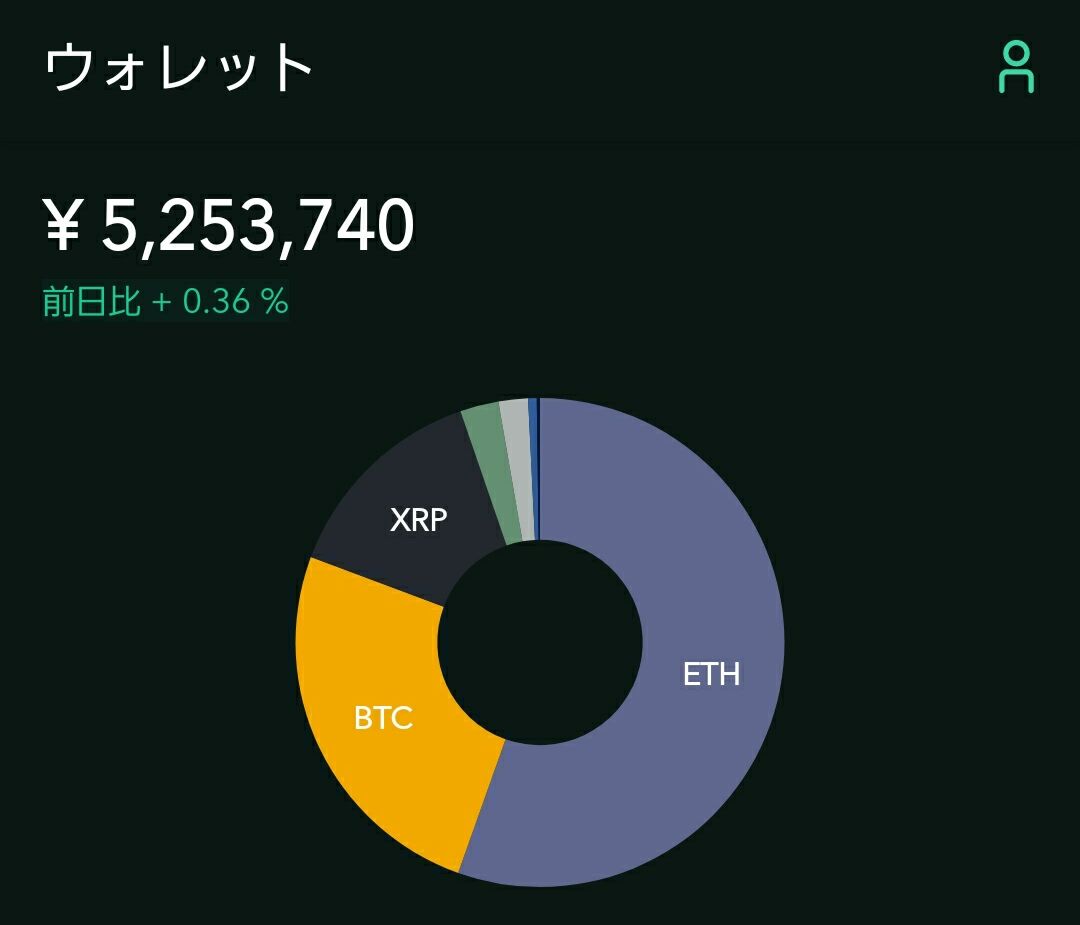 現在は大半を円に戻してビットコインやイーサリアムに変えるタイミングを見計らっています(^^♪