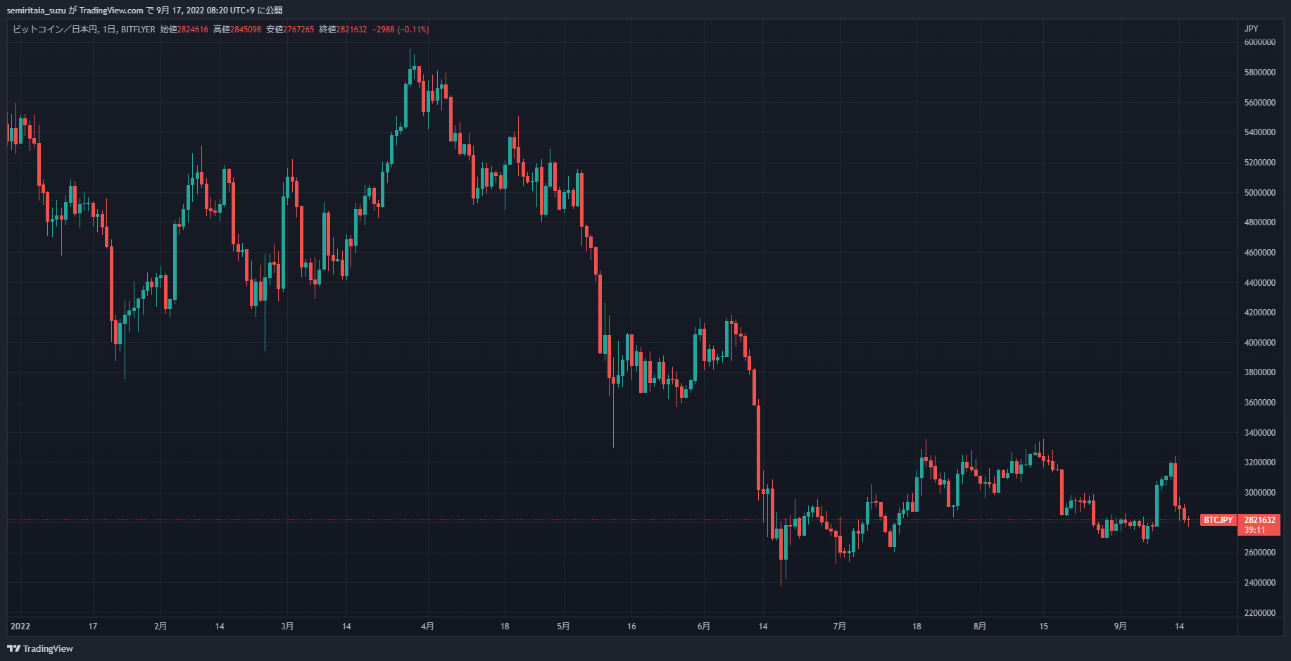 もちろんこのあとビットコインがさらに下落するなら一旦売って買い戻すのが正しいですし、反転して上昇するなら全力買いが正しいです。
