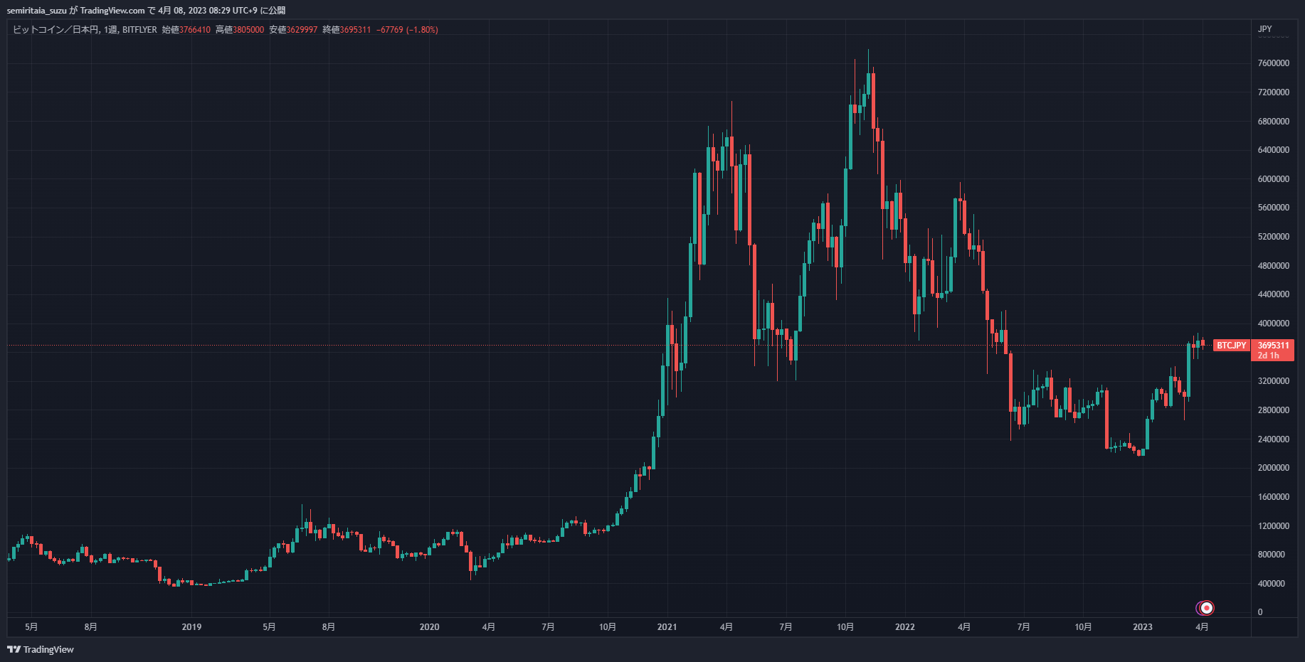 もちろんこのあとビットコインがさらに下落するなら一旦売って買い戻すのが正しいですし、反転して上昇するなら全力買いが正しいです。