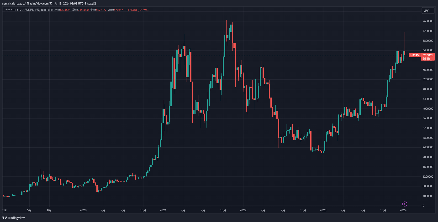 もちろんこのあとビットコインが下落するなら一旦売って買い戻すのが正しいですし、このまま上昇するなら全力買いが正しいです。