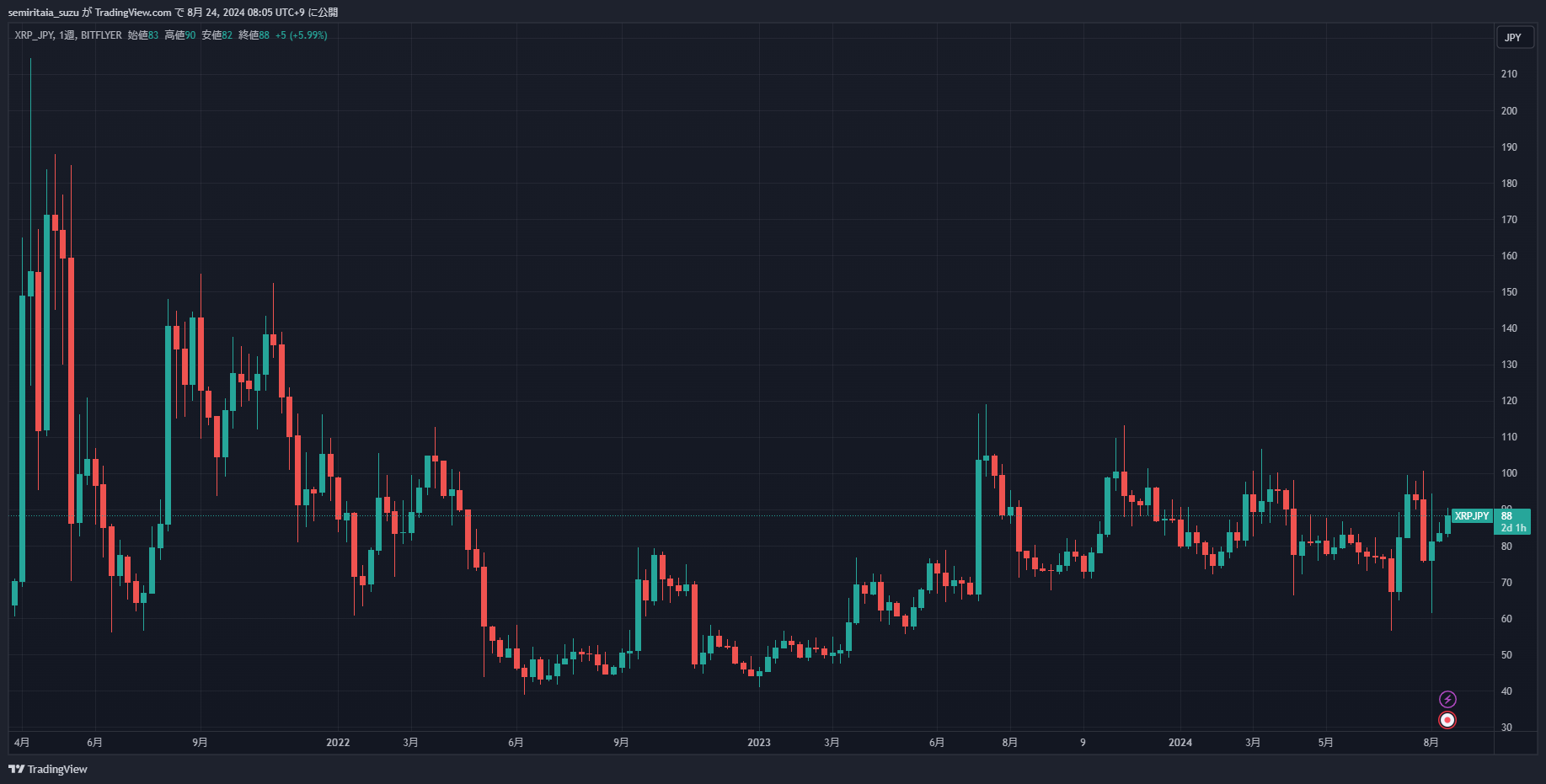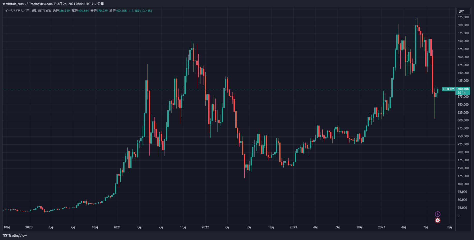 もちろんこのあとビットコインが下落するなら一旦売って買い戻すのが正しいですし、このまま上昇するなら全力買いが正しいです。