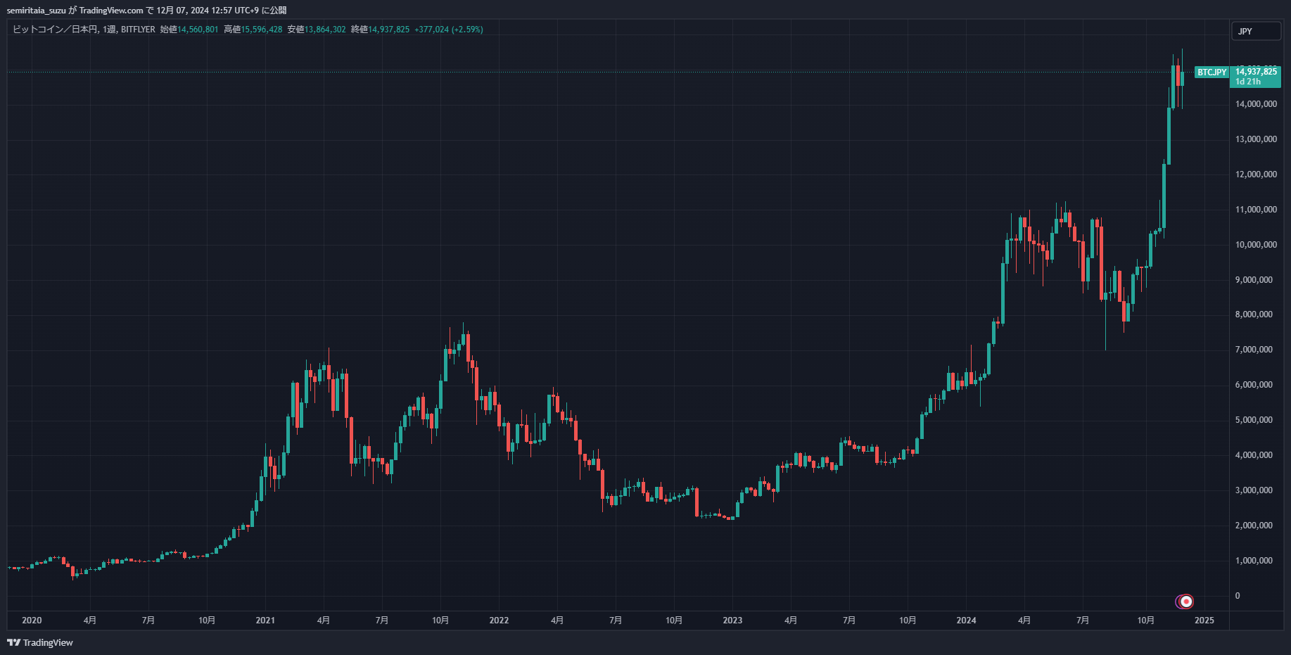 ビットコインが最高値を更新中です。