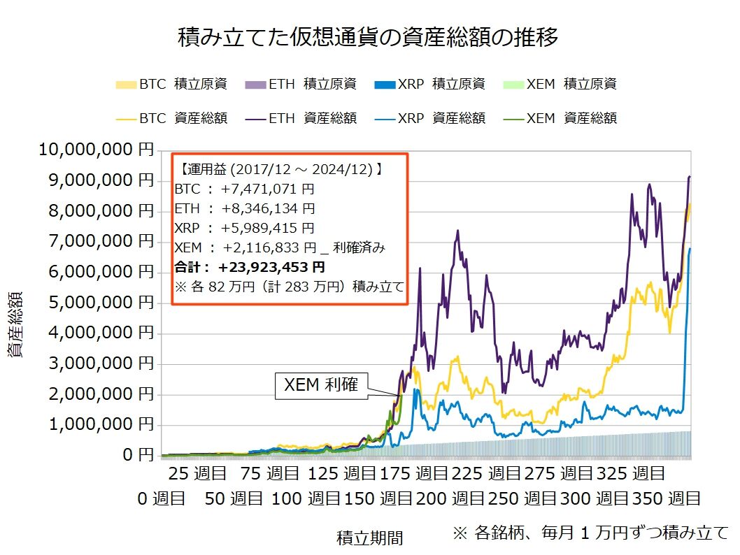 積み立て366週間(2017年12月開始)で『+23,923,453円』でした。