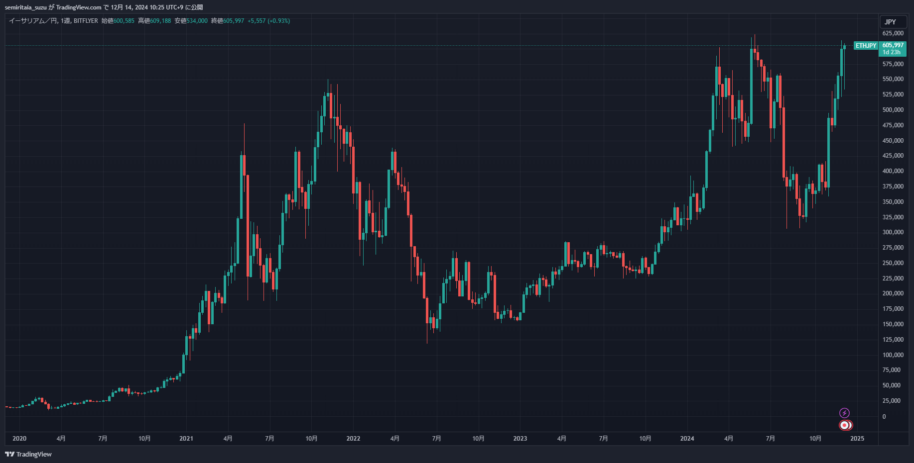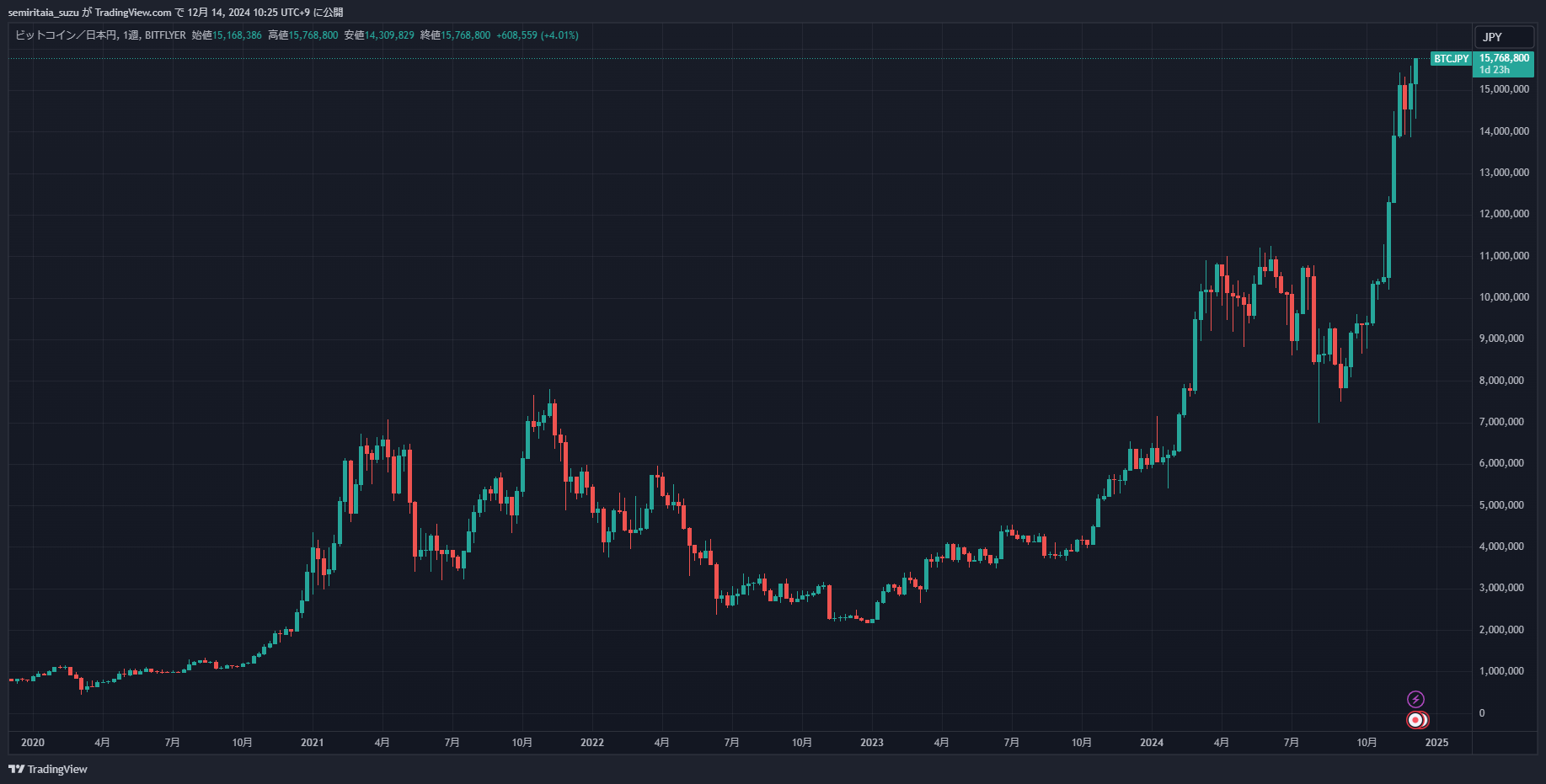 もちろんこのあとビットコインが下落するなら一旦売って買い戻すのが正しいですし、このまま上昇するなら全力買いが正しいです。