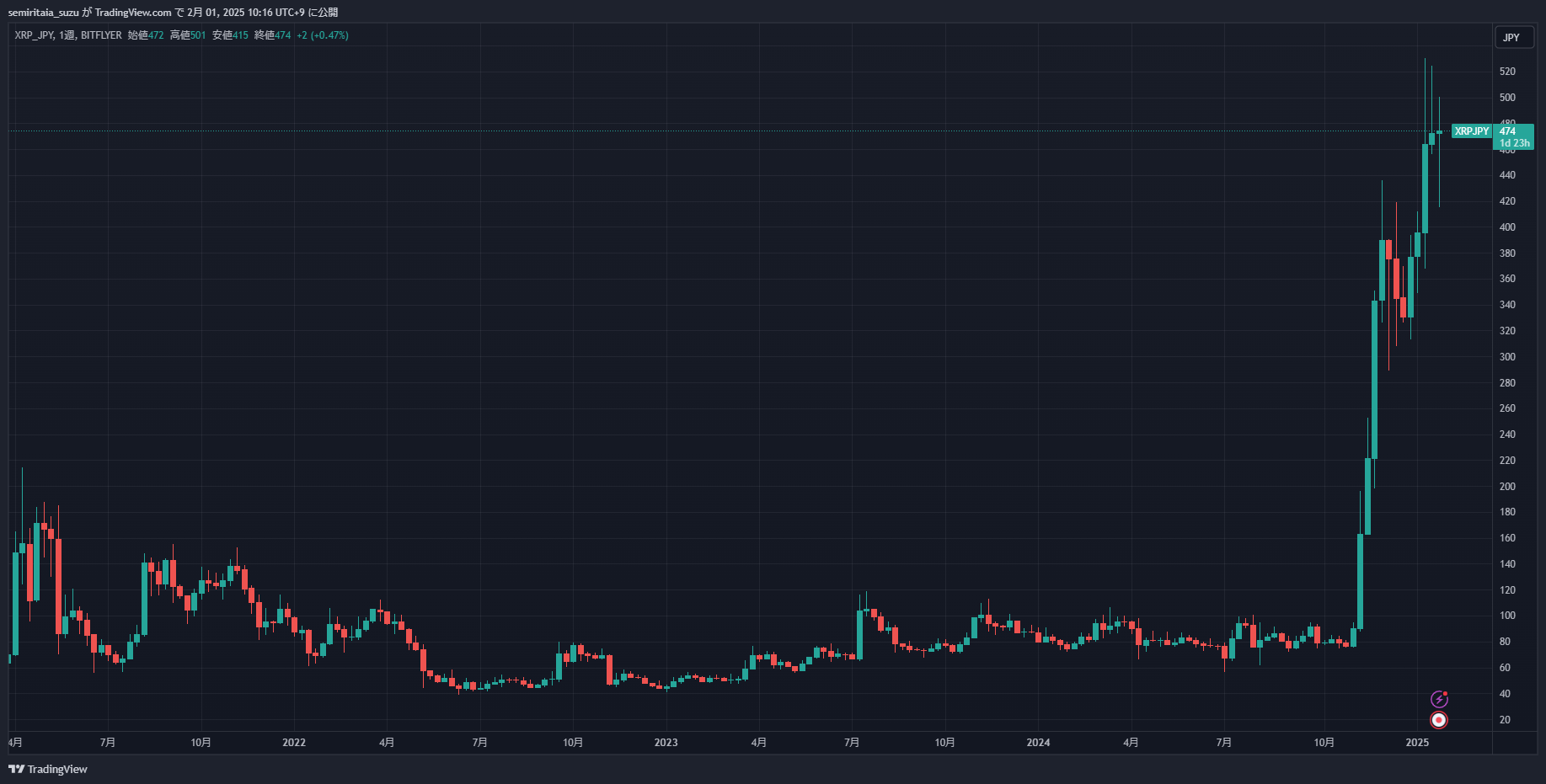 もちろんこのあとビットコインが下落するなら一旦売って買い戻すのが正しいですし、このまま上昇するなら全力買いが正しいです。