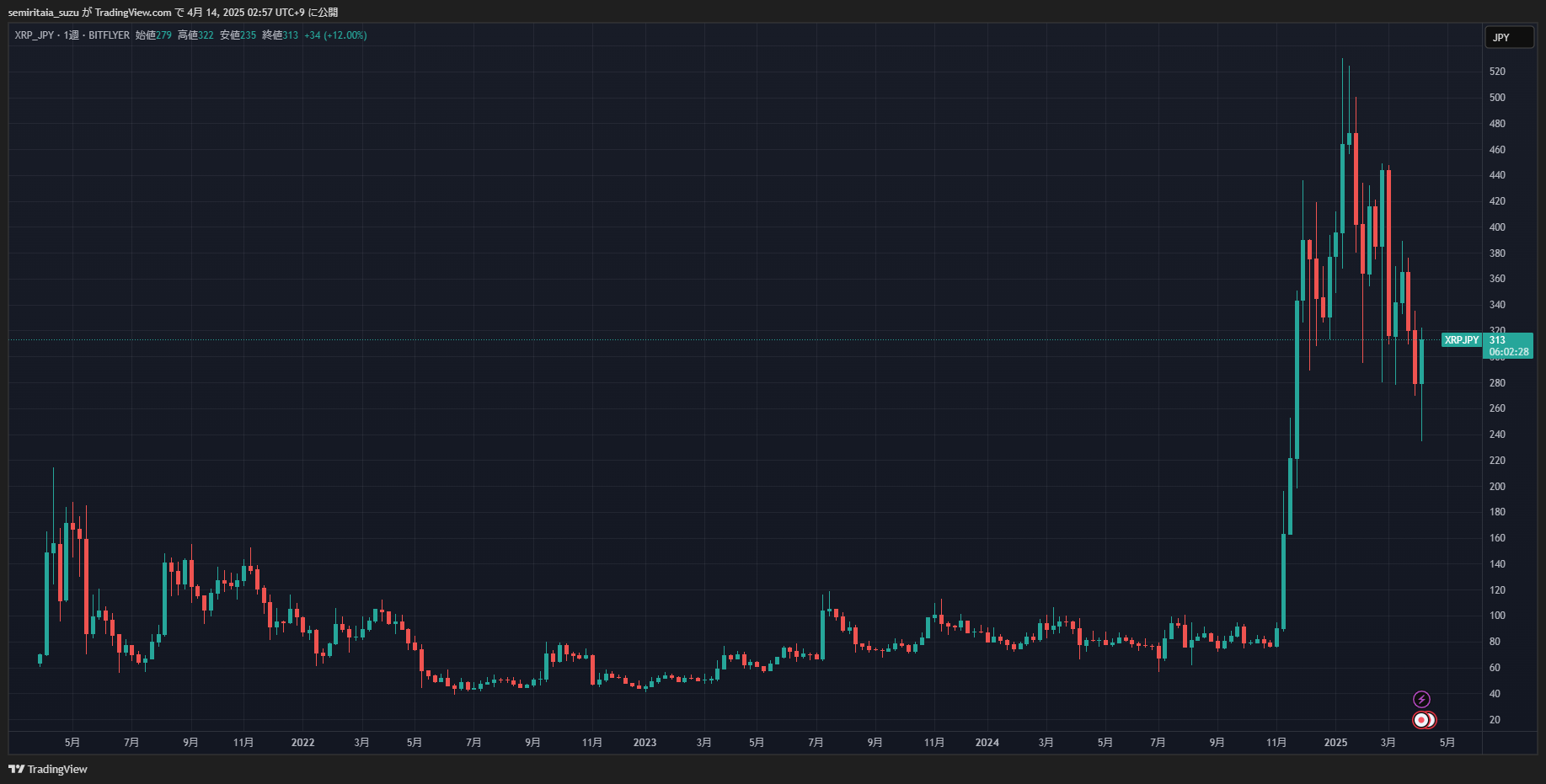 もちろんこのあとビットコインが下落するなら一旦売って買い戻すのが正しいですし、このまま上昇するなら全力買いが正しいです。