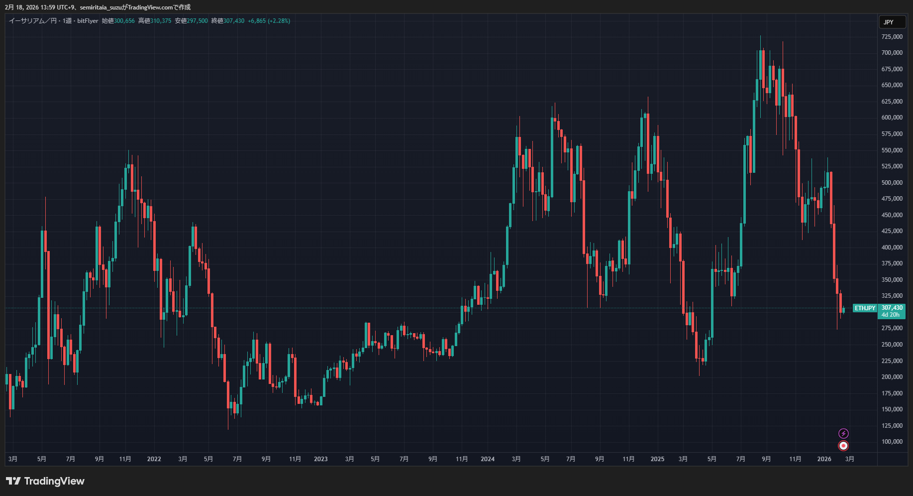 私は2017年12月の200万円の時から30万円台まで暴落し、その後3年ほど低迷している期間も積み立てを続けましたが、含み損が膨らむなか何年も手動で購入していると、心が折れそうになりますよ(^_^;) pic.twitter.com/9Pq4r2up1h