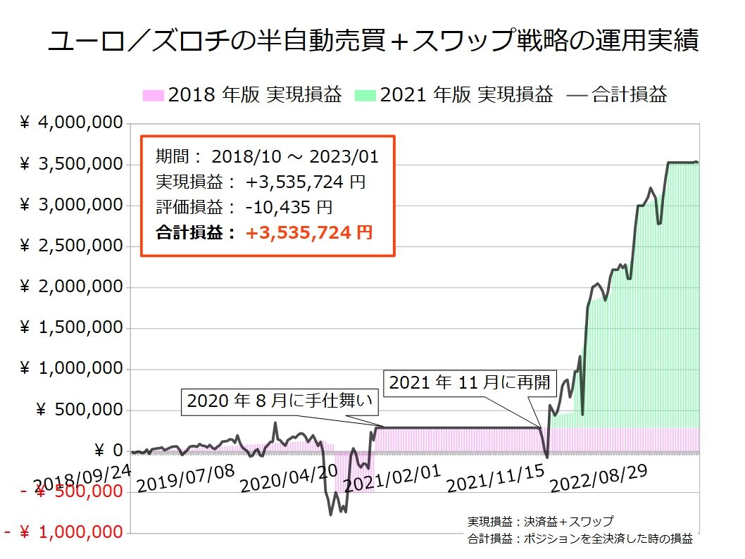 1月16日週のユーロ/ズロチの半自動売買+スワップ戦略による不労所得は4,256円でした(#^.^#)