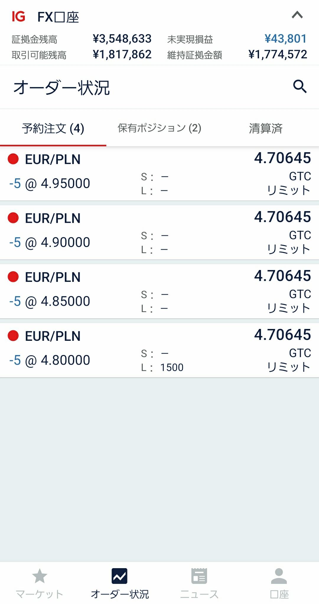 一応、ヒロセ通商やサクソバンク証券でも扱っているんですが、どちらもユーロ/ズロチのスワップには力を入れていないので、現状ではIG証券かトレイダーズ証券のどちらかでしょう。