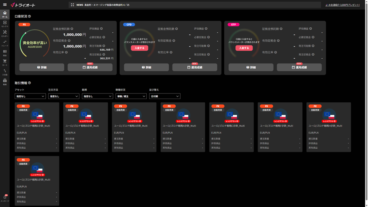 2023年12月からユーロ/ズロチ戦略を自動売買が使えるトライオートに移行しています。