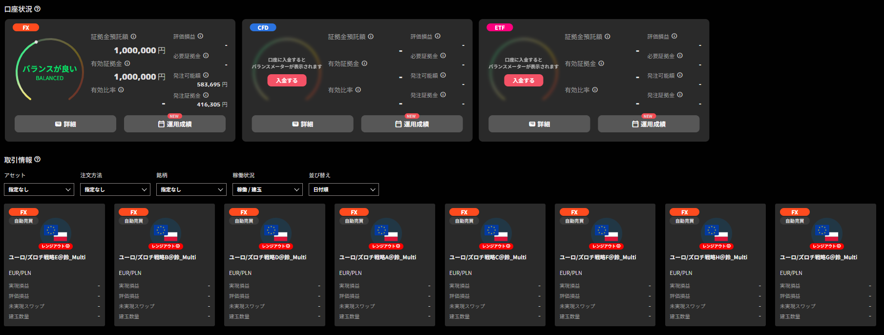 このリニューアルにより、これまで手動で注文を入れ直していたユーロ/ズロチ戦略を自動売買化することができるようになりました。
