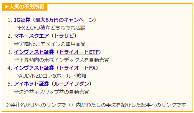 ただ、最近は他にも上手く仕組化できた手法があり、ちょくちょく順位が入れ替わることもあります。