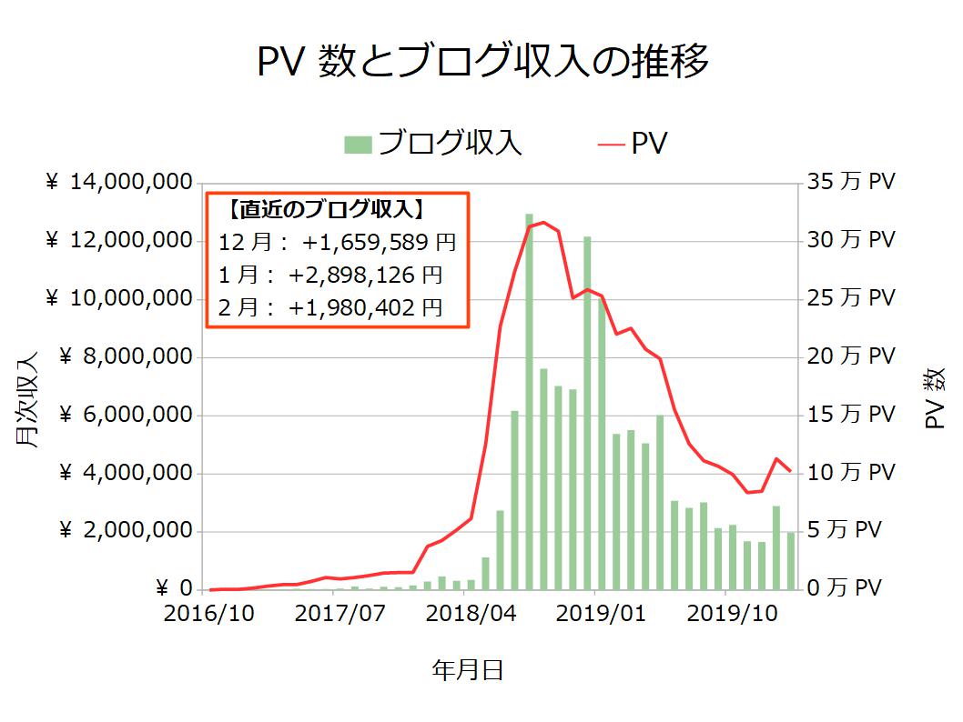関連記事:【マル秘】2020年2月のブログ収入は1,980,402円でした