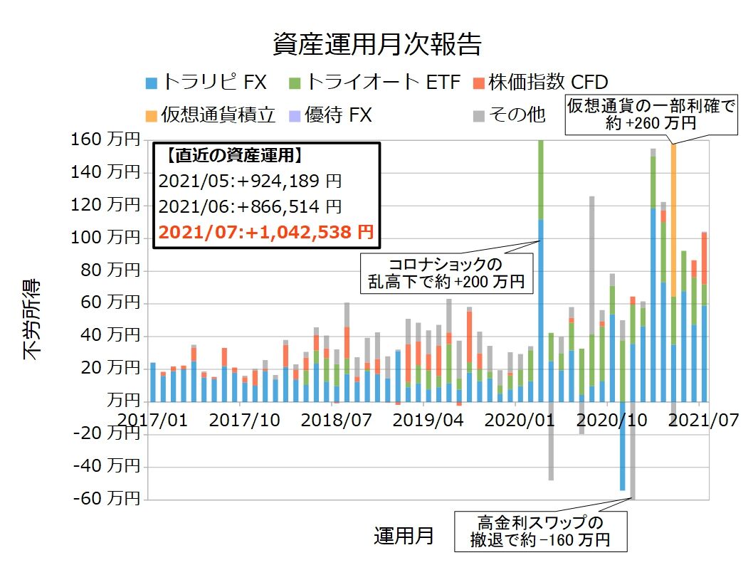 ▼2021年7月のトラリピによる不労所得は588,142円でした
