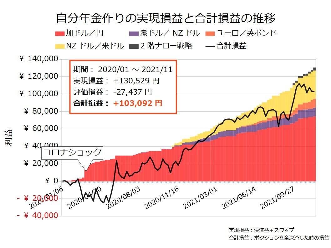 ▼2021年11月のトラリピによる不労所得は638,171円でした
