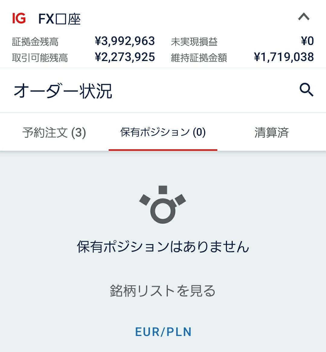 ユーロ/ズロチが高値圏かつ、スワップがプラスの時だけの期間限定の戦略ですが、ホールドしていてもスワップが受け取れるので、逆方向に動いてもストレスの掛からない戦略になっています(^^♪