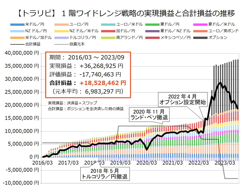元々トラリピはワイドレンジ戦略のみの運用でしたが、ワイドレンジ戦略で十分な生活費を受け取れるようになったため、より大きな利益を狙うために攻めた運用も始めました。