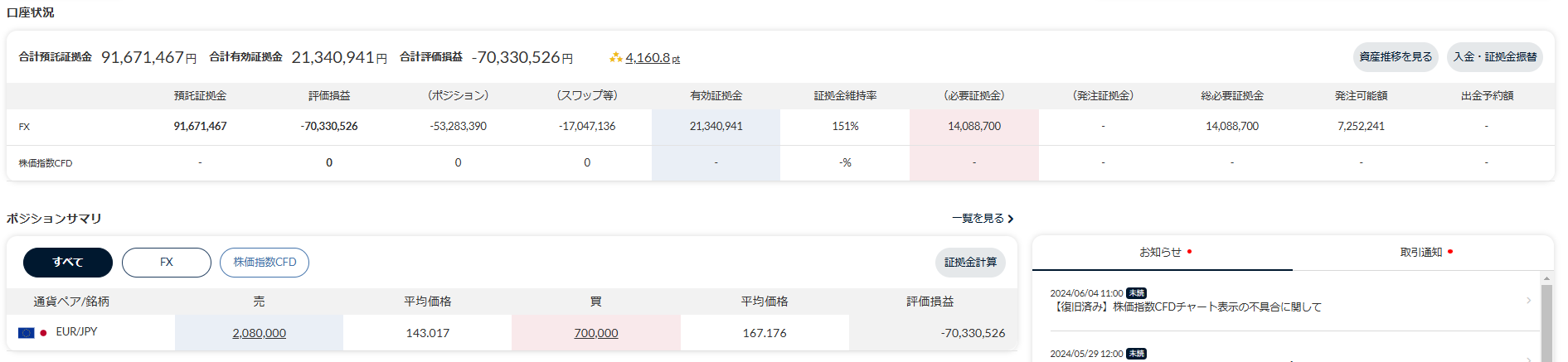 - 合計損益:-39,542,664円