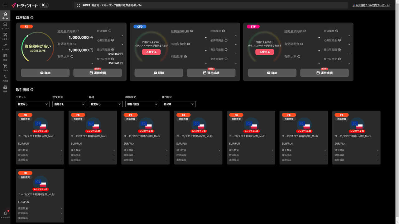 現在、約1億円で『広いレンジに仕掛ける初心者向けのワイドレンジ戦略』と『狭いレンジに仕掛ける中級者向けのナローレンジ戦略』の2階建てで運用しています。