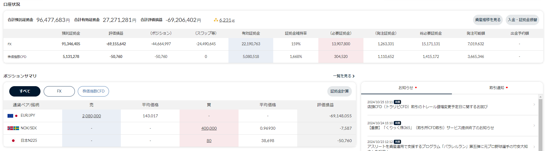| 2024/08 | -727,469円 | 29,774円 | 144,889,224円 |