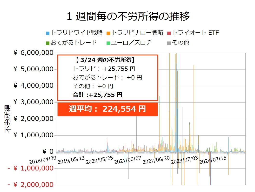 2025年3月24日週の不労所得は25,755円でした!!