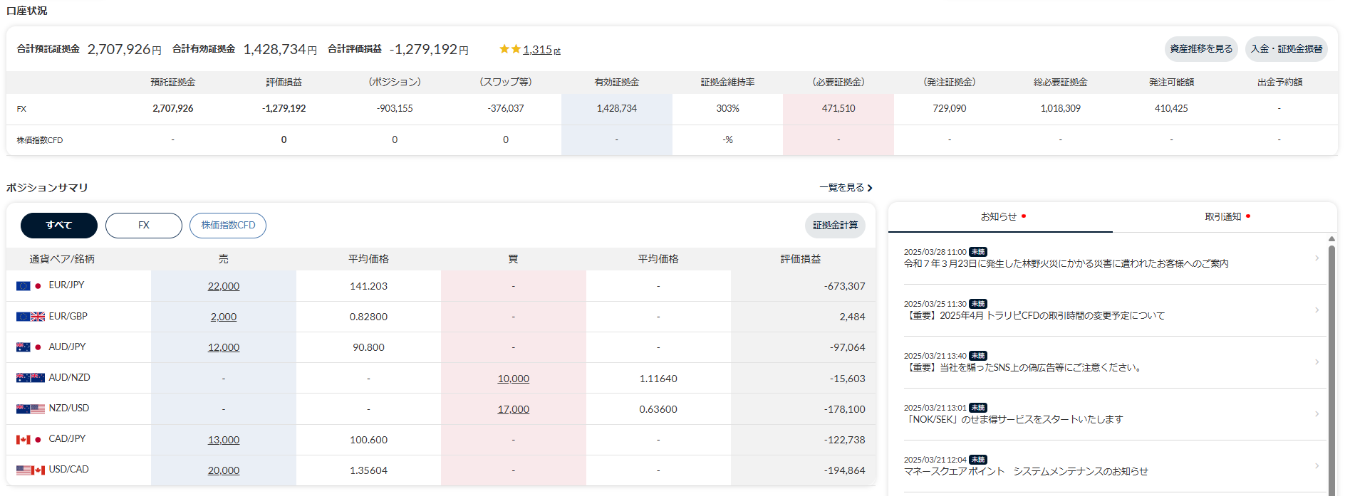 - 合計損益:-25,052,754円