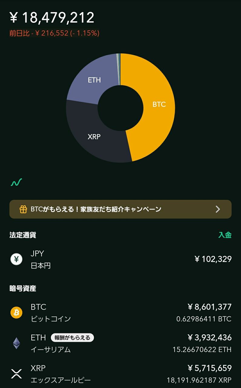 仮想通貨積立【時価残高:1,850万円】