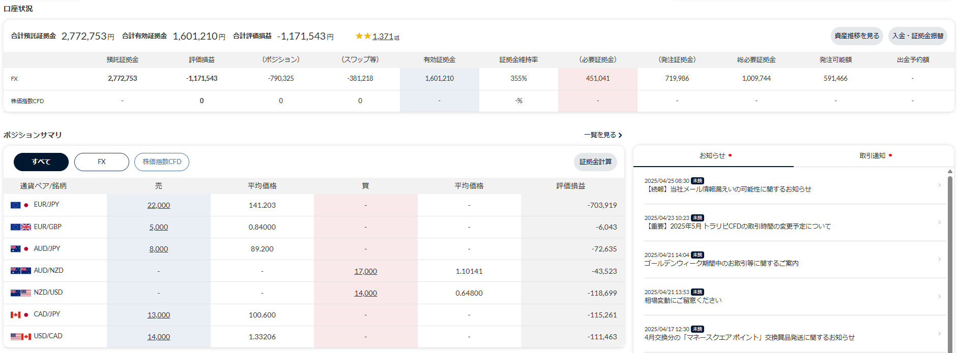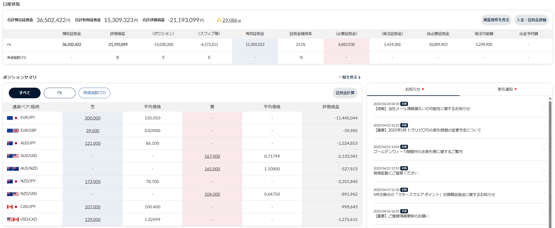- 合計損益:-25,052,754円