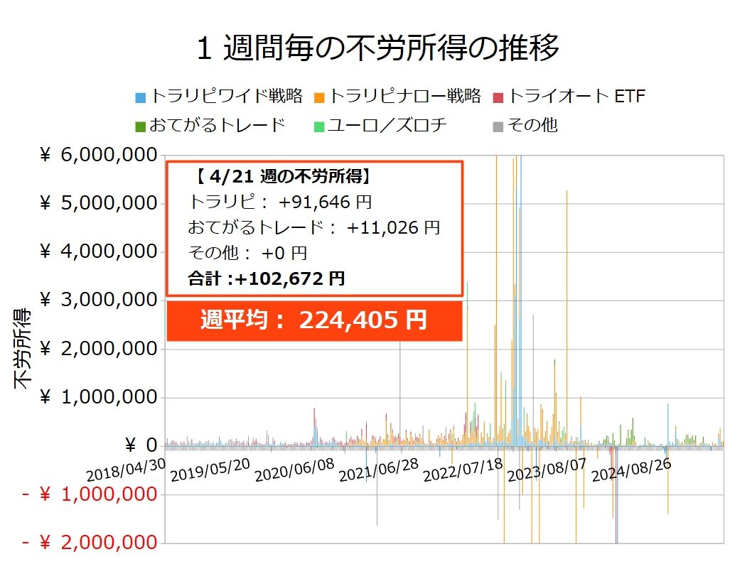 2025年4月21日週の不労所得は102,672円でした!!
