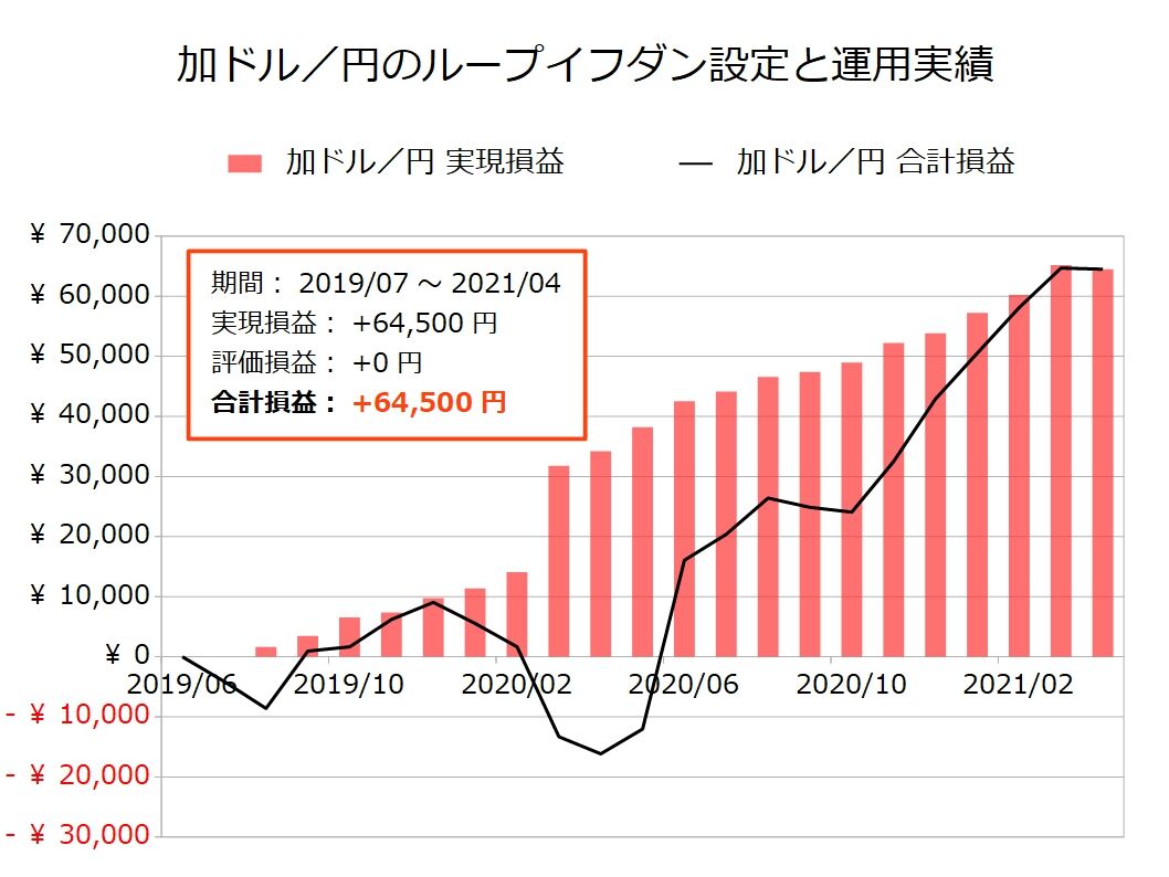 ただし、当然ながらどんな設定を選んでも利益が出るわけではないので、今回はわたしが実際に運用している加ドル/円のループイフダン設定と運用実績を解説していきます(#^.^#)