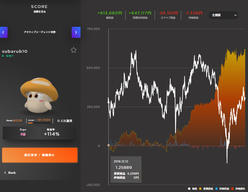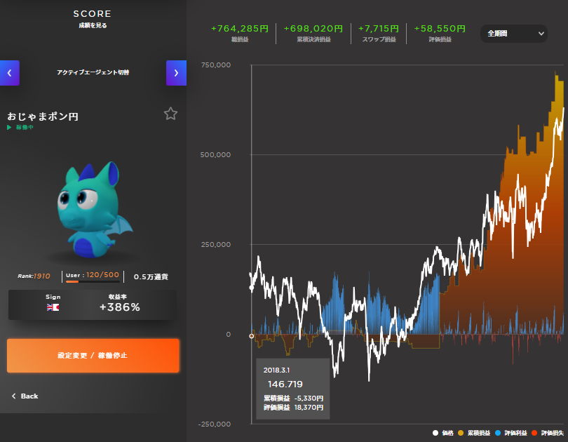 マイメイトは仕組化できた時のリターンが絶大(トラリピは年間10%程度だが、マイメイトは年間100%もあり得る)なので、仕組化に挑戦していましたが断念しました。