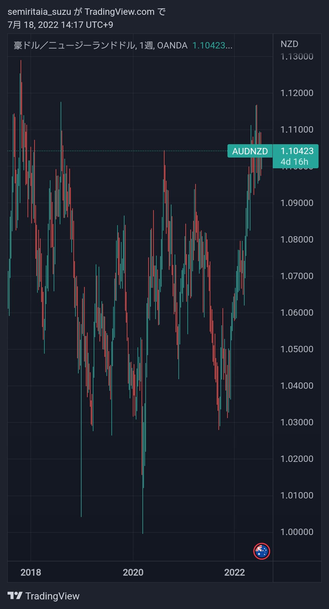 豪ドル/NZでどれだけ上手く行っても得られる利益は限られていることが分かります。