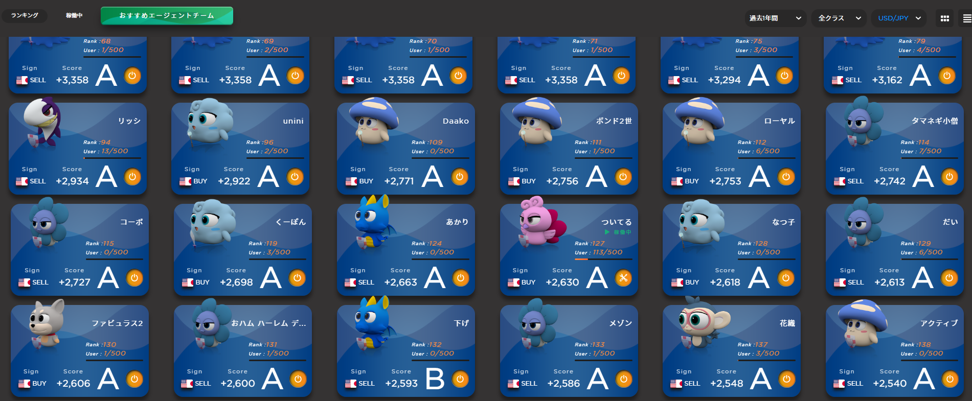 - 長期的に利益を積み重ねているエージェント