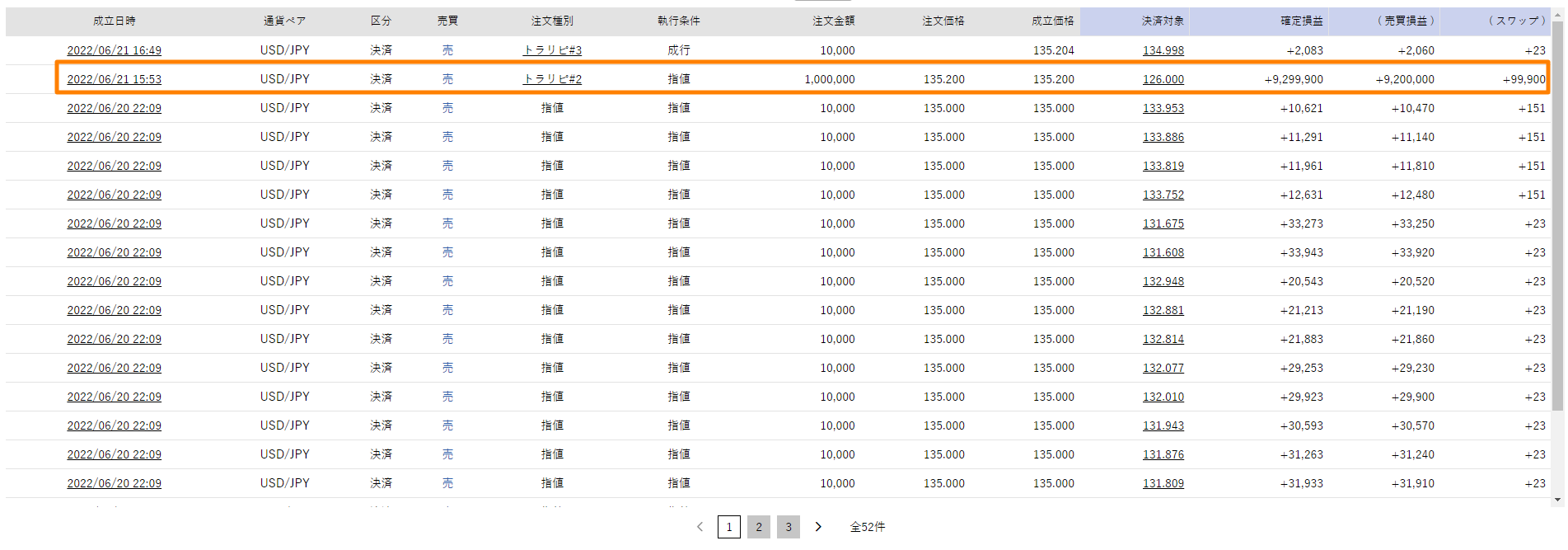 その戦略で6月に+1,000万円以上の利益を出しましたが、4月13日に126円で保有したポジションがメインなので、約2ヵ月の間持ちっぱなしでした。