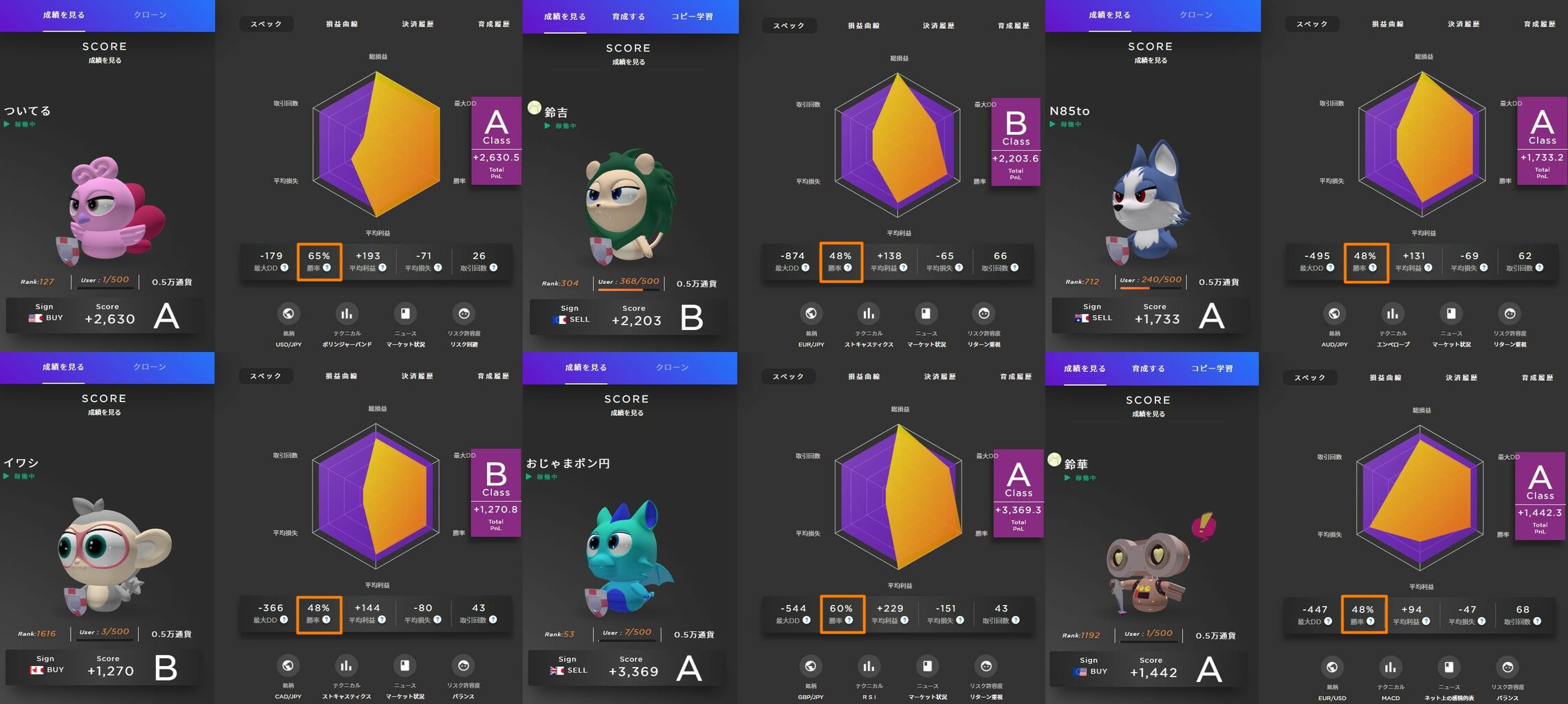 優秀なエージェントでも勝率50%以下が珍しくないことを忘れないでください。