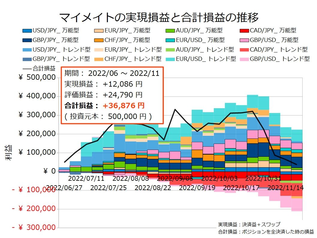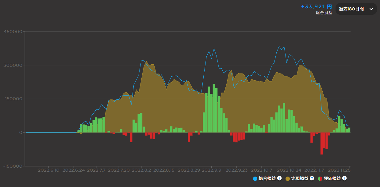 円安ドル高トレンドが始まった年初から運用を始めていれば、今の倍以上の利益は積み重ねられたはずなので、この状況でも十分に利益が残ったんでしょうが、それで良しとしていいのか……