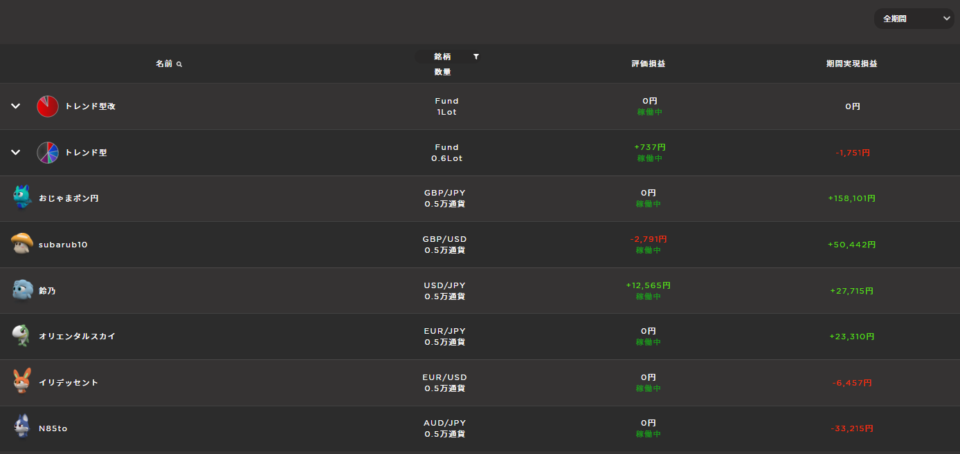 また、ファンド機能については手動で運用していたトレンド型をファンド向けに微調整しただけの状況です。