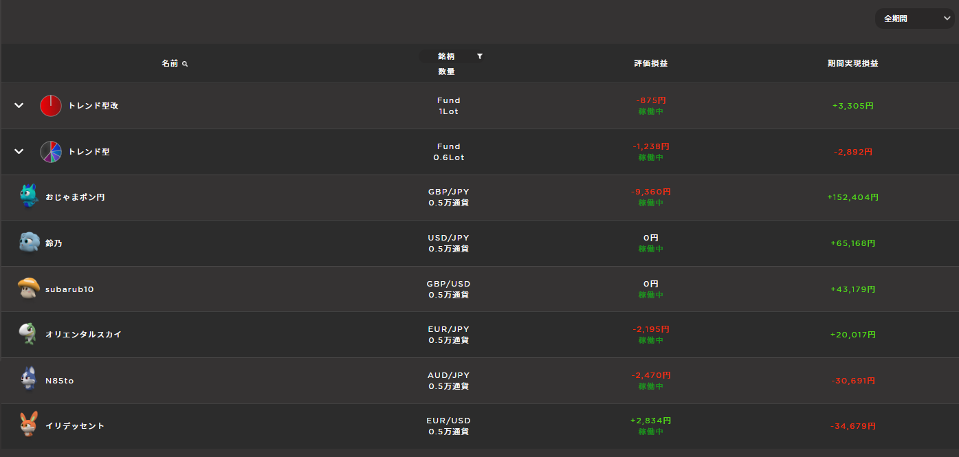 | 旧トレンド型 | 0円 | -164,879円 | 0円 | 0.0lot | |