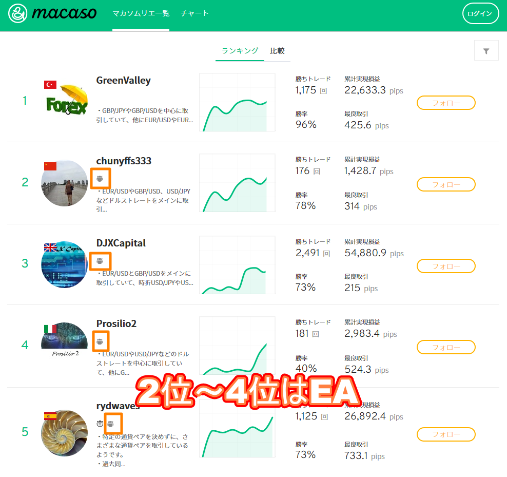 ただ、ちょっと気になっているのが、ランキングの上位がEA、自動売買のプログラムなんですよね……