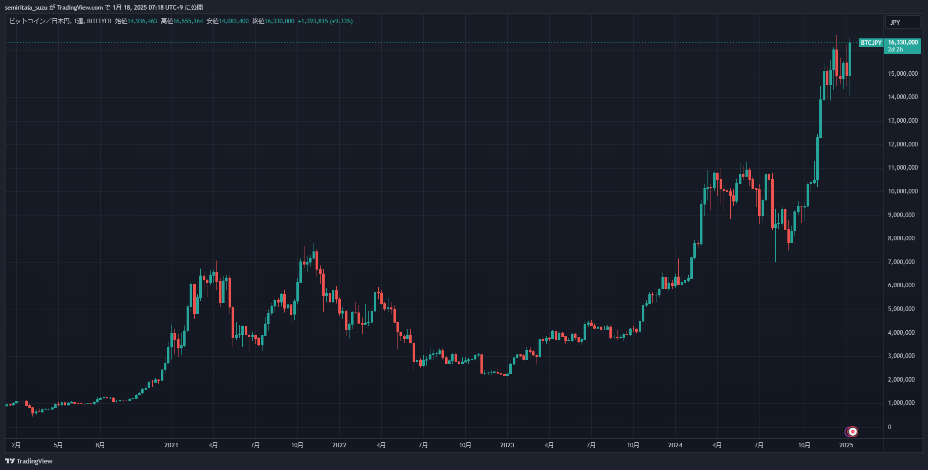 2024年の初めに最高値を更新したビットコインが、年内にまた最高値を更新し、その付近で推移していますΣ(・□・;)