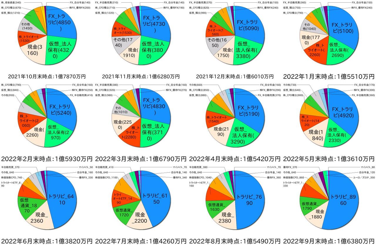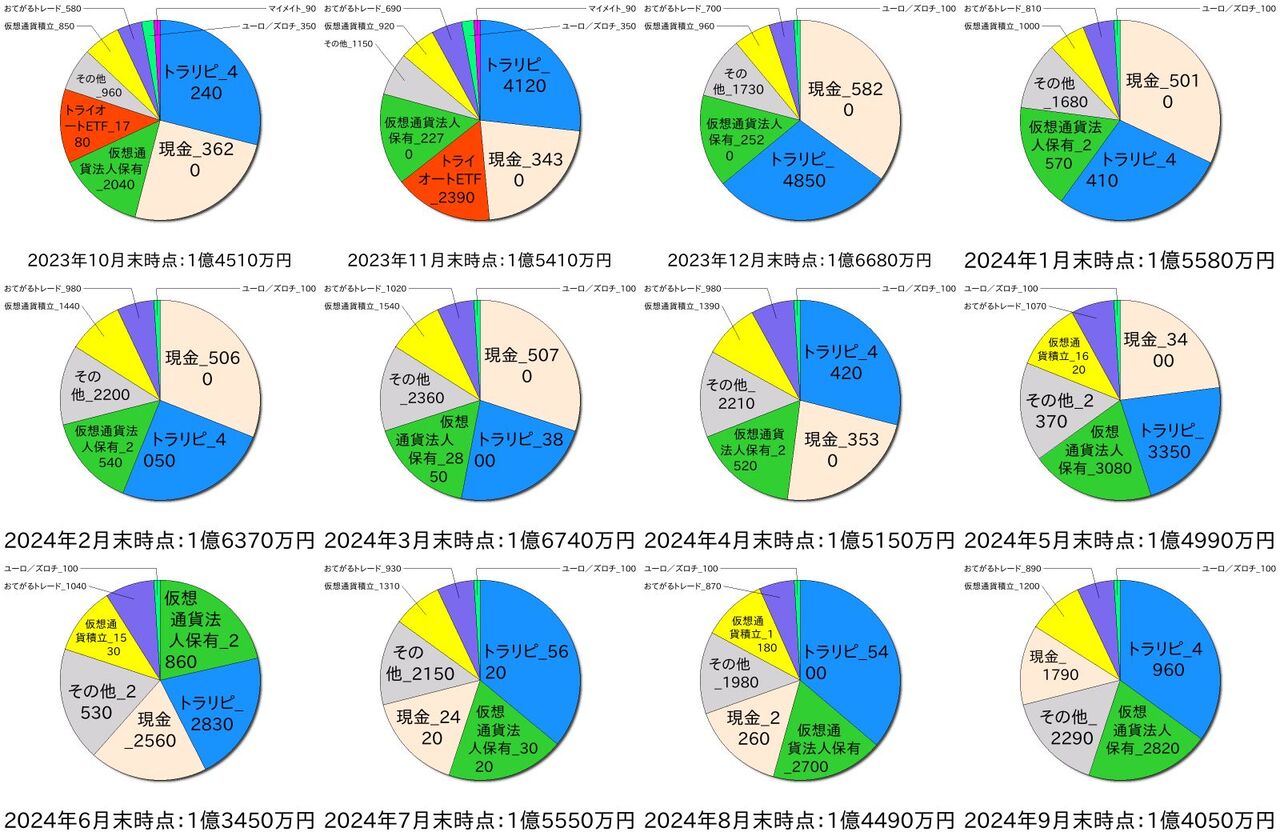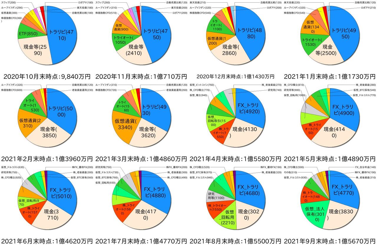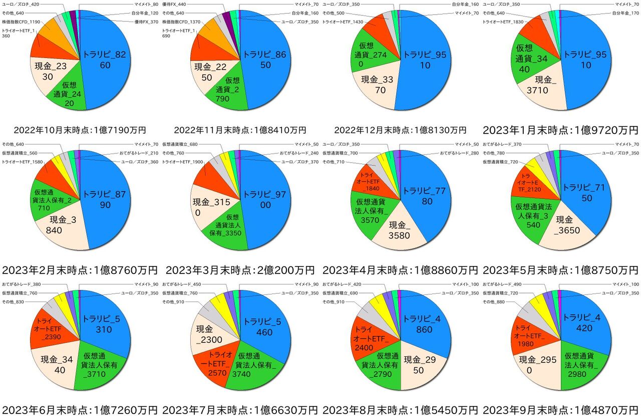 ポートフォリオを並べてみると徐々に様々な商品へ分散されて行きますが、序盤はトラリピで資産形成をしてきたことが分かります。
