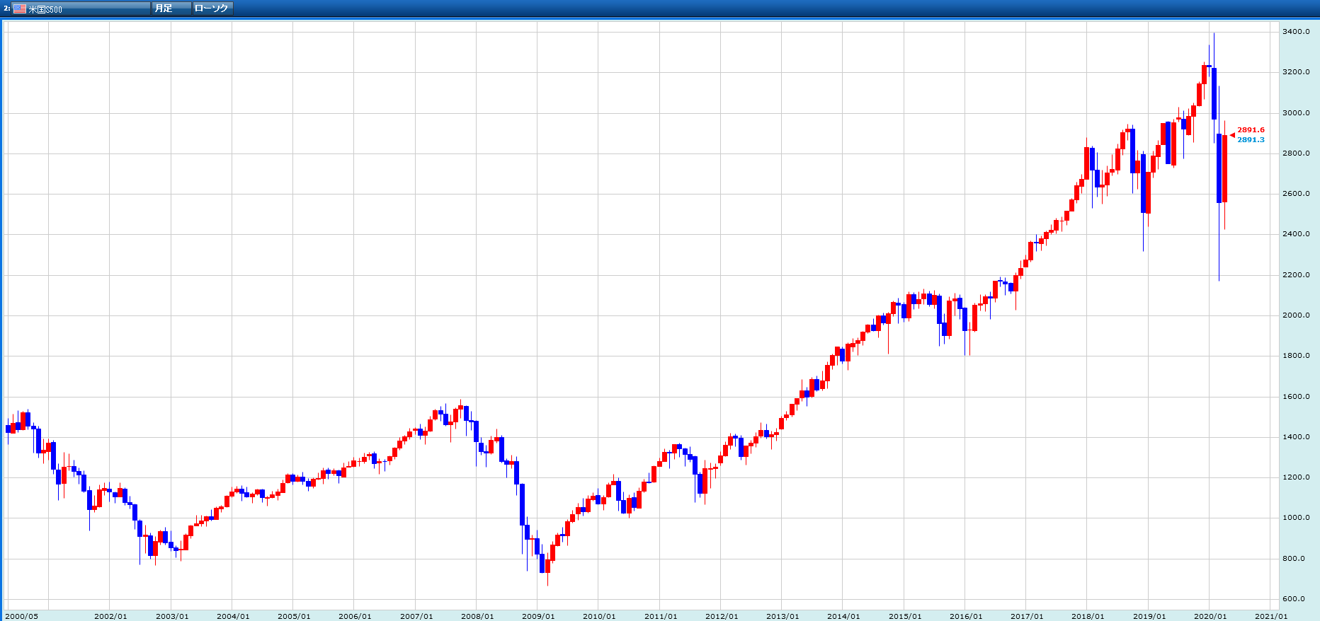 ▼米国S500のチャート(20年)