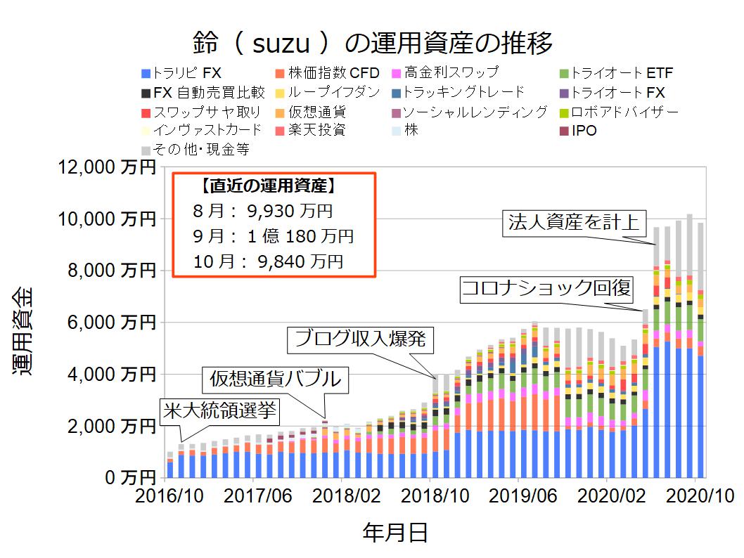 2020年10月末時点の運用資産は約9,840万円でした!!