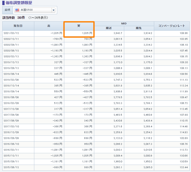 ▼GMOクリック証券_米国500_価格調整額のみ