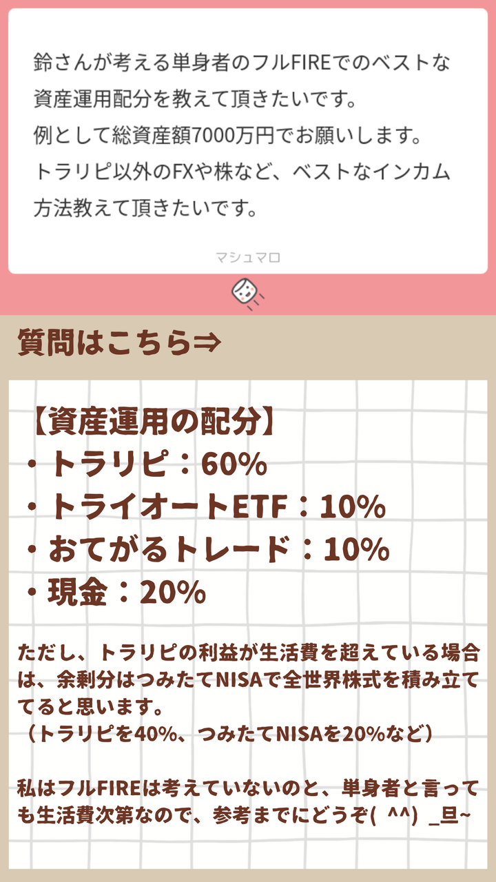 トラリピはわたしのメイン運用となっているので、Twitter&Instagramを使ってトラリピのQAに回答しています。