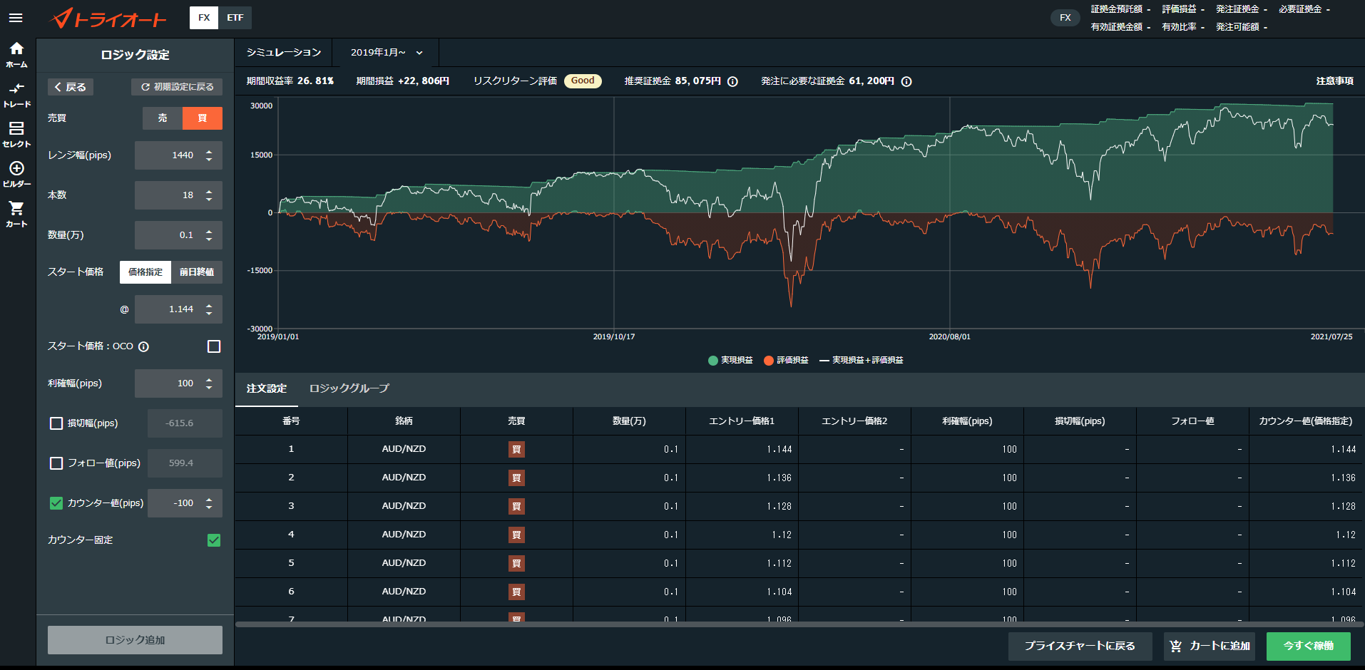 トライオートFXのビルダー機能でバックテスト